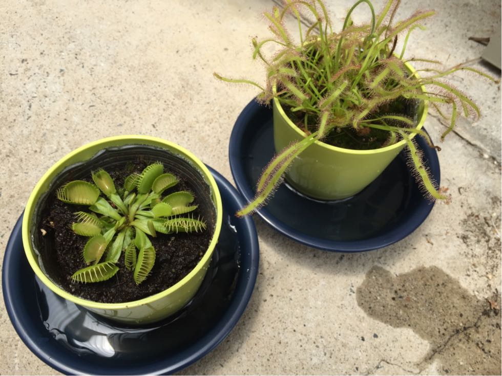 左側のがハエトリ草。右側のがモウセンゴケです。