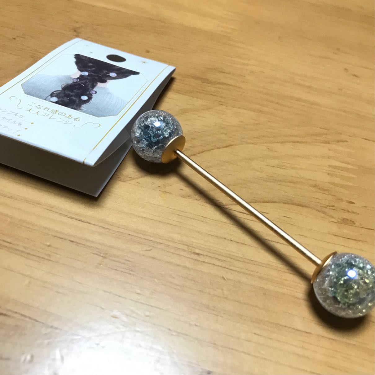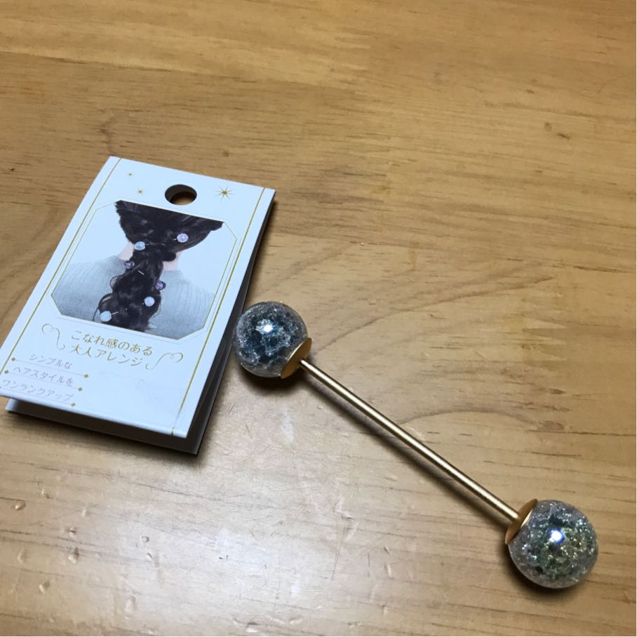 片一方がねじになっていて、そこを外してこう、編んだり結った髪に差し込むだけのお手軽ヘアアクセ、らしい。