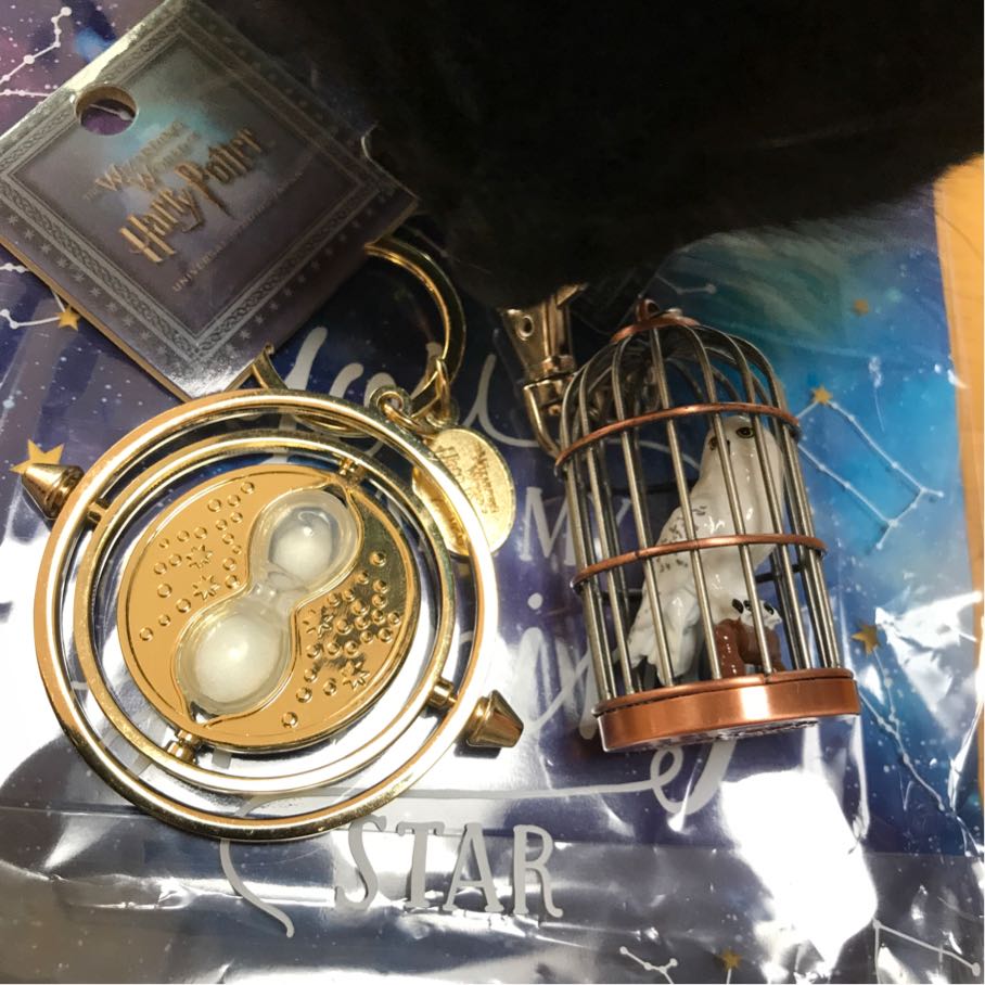 右のが有名なハリーの相棒である白フクロウの「ヘドウィグ」キーホルダー。