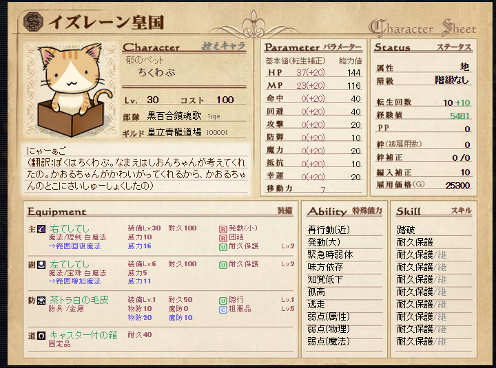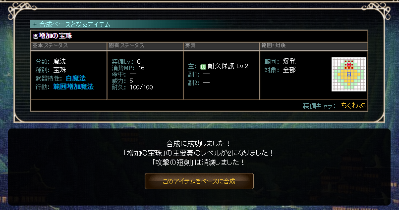 耐久保護が無事もう1つ手に入ったので、ちくわぶちゃんが更に強化されました。