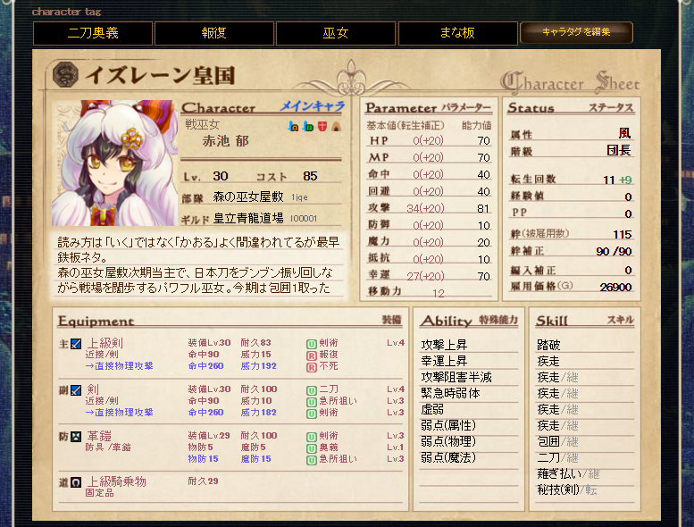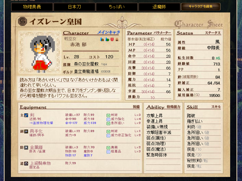 毎期記録しようと思って忘れちゃうんで16期の記録はないけれど、確か防具の剣術と急所狙いが1個ずつレベル低かったはず。
