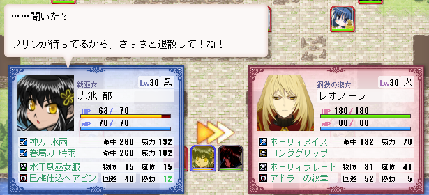 今回は珍しく左陣に配置されたので、レオノーラが相手です。