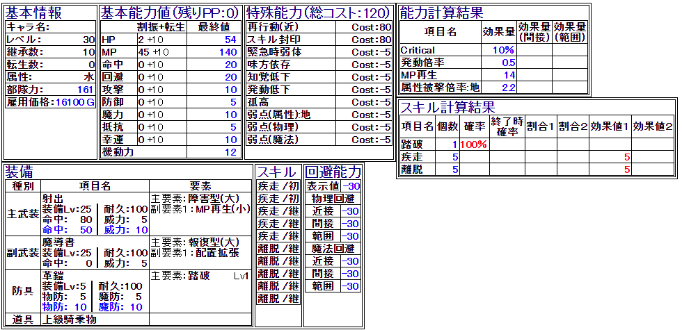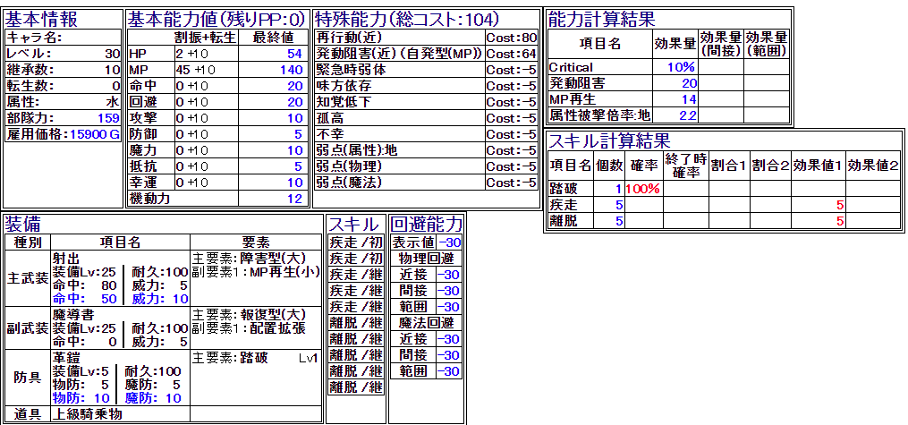 離脱が5あるので誰かに再行動をかけてから、不倒持ちの横に隣接させて不倒不発にさせるかんじのビルド。