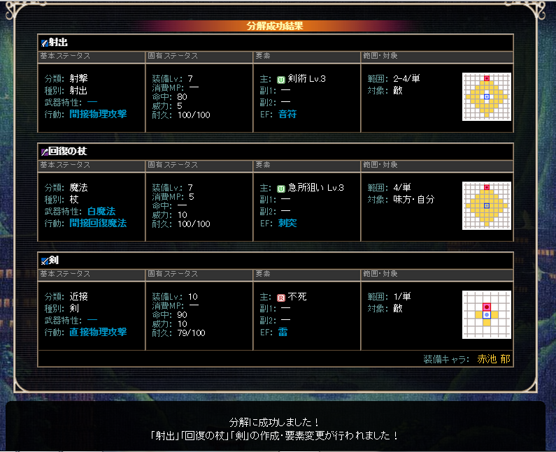 この急所狙いLv.3どうするか……。副武装のLv.3と合成してLv.4にしてもいいような気もしますが、いずれこの副武の急所狙いも分解して外しちゃうんだよなぁ……