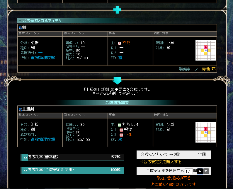 さて、手元に残った剣術Lv.3はこれからまた合成に使うんですが……
