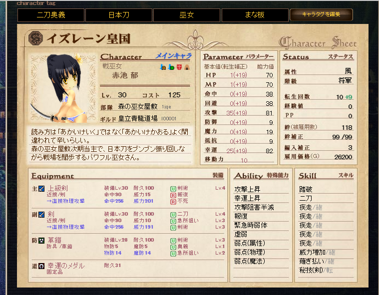 そしてこの剣装備する為にキャラプロフ開いて、防具欄が