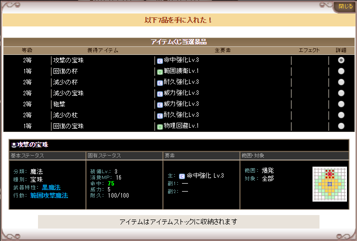 うん、そうだね……雫品わっちゃわちゃ出たし、よく見たら威力増加1個出てるから、うん。