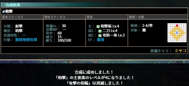 ミヤコの砲撃術がLv4にヽ(゚∀゚)ノ