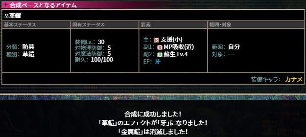 公式曰く、フラッシュ頼りだったえゆしをHTML5に変えていく過程の最中で、EFも一新しなきゃいけない都合でしばらくくじとか出来ないよメンゴ!らしいんで、潔く罪使ってカナメの防具をようやっと合成。
